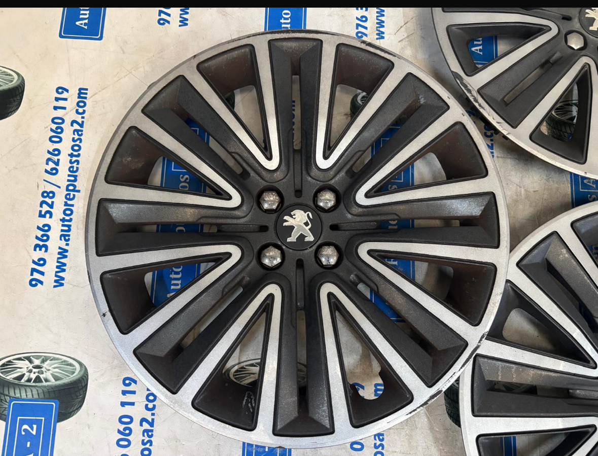 ✅Juego tapacubos Peugeot 2008 de 16 pulgadas. Procedente de desguace. Precio 40€. 💶 Precio 40€. Todos nuestros precios incluyen IVA. 🔴Somos AUTO REPUESTOS A-2. 📦 También hacemos envíos a toda España (+12,10€). 📞 Nuestros teléfonos de tienda 🕰 Nuestro horario de tienda y taller ✅Ref web R5140825. Productos en la misma categoría